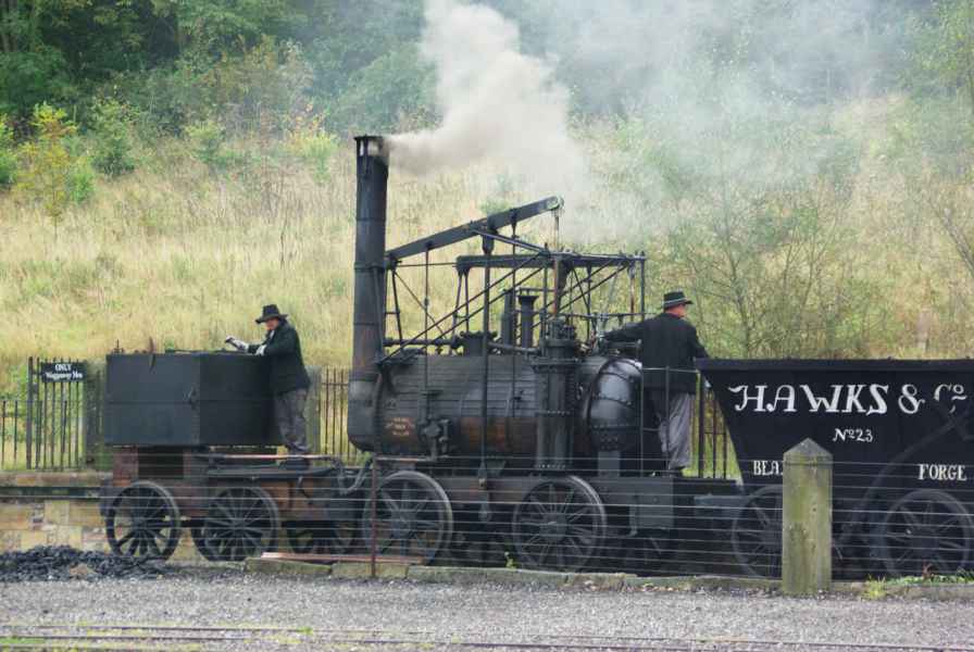 Beamish eksperimenterer med rekonstruktion af lokomotiver fra 1820’erne. Det lugter helt rigtigt, og publikum kan få en køretur ud i det tidligt industrielle landskab. Beamish ligger lidt syd for Newcastle og åbnede i 1972.