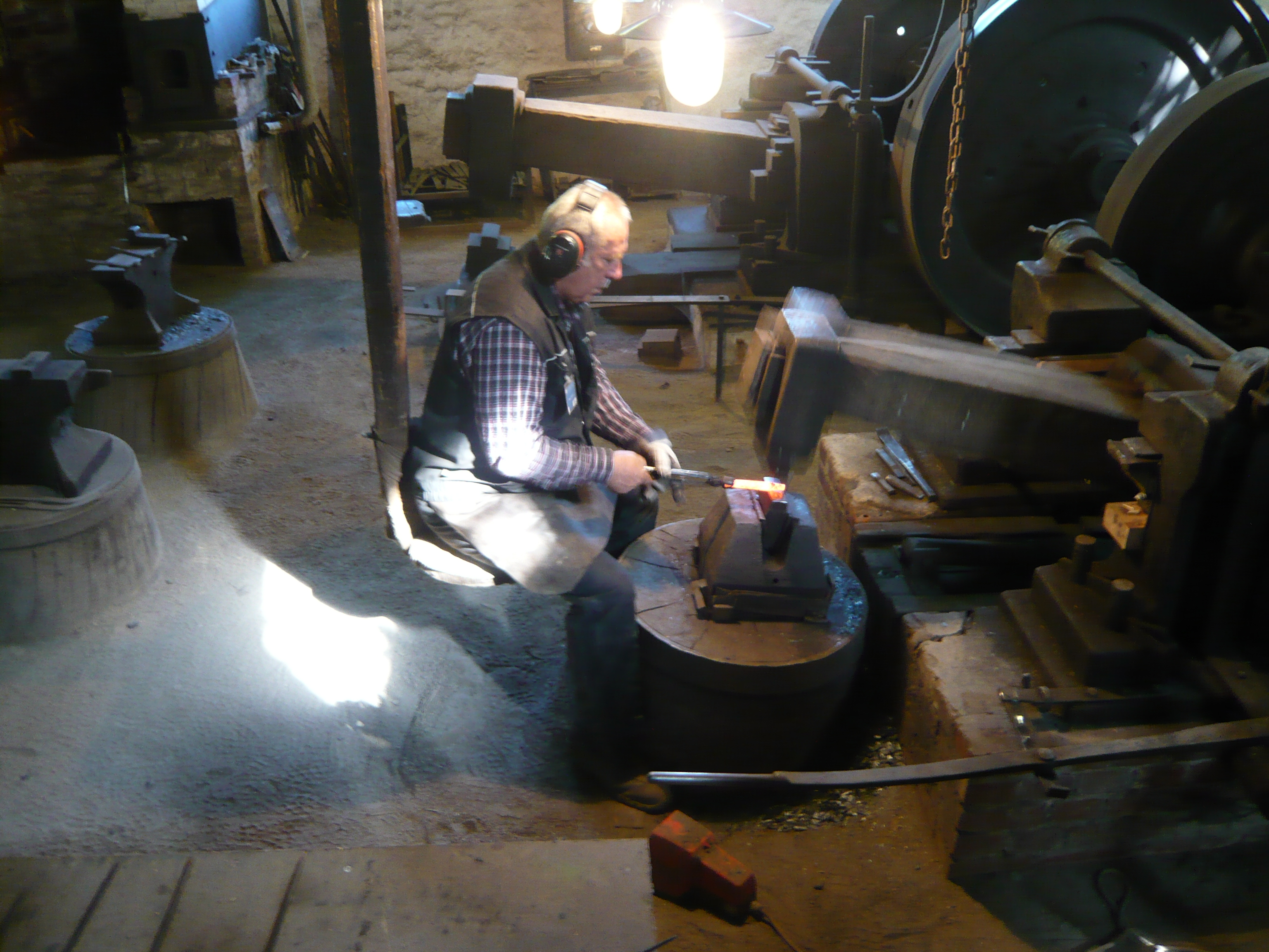 I tyske Hagen, der åbnede i 1973, fokuserer man på tidlige industrielle teknikker. Som her et mølledrevet hammerværk. De ansatte skal have høreværn, men det behøver de besøgende ikke – selvom larmen er øredøvende!