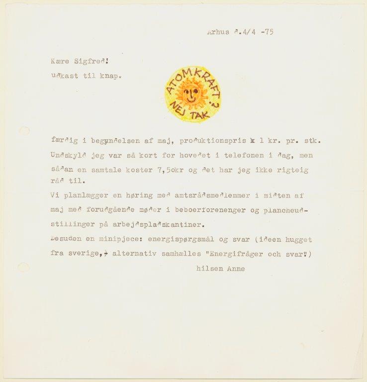 Helt konkret faldt jeg i 2011 over en udenlandsk hjemmeside, som oplyste, at ”Atomkraft. Nej tak”-mærket var lavet i København i 1970’erne. Som mange århusianere vil vide, er dette ikke korrekt, idet mærket er lavet i Aarhus i 1975 af den økonomistuderende Anne Lund. Men situationen er formentlig den, at København er den eneste danske by, der er kendt internationalt, og så måtte noget så markant som den smilende sol, nok også være designet i København!