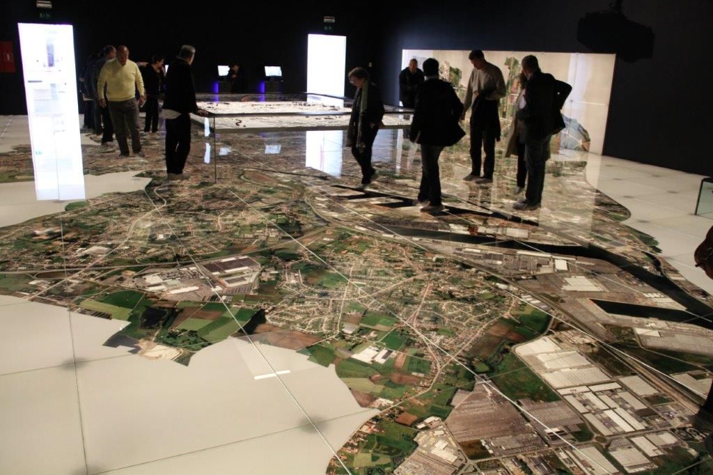 På STAm i Gent kan de besøgende gå rundt på et fantastisk glasklart gulv, der viser et kæmpe luftfoto af byen. I Aarhus Fortæller får vi et gulv, der er inspireret heraf, og vi er spændt på, om museets gæster også her vil ligge med enden i vejret for at se detaljer i billedet. Det var også på STAm, at museumsdirektør Christine De Weerdt bekræftede os i, at en kronologisk fremadskridende fortælling er den rigtige for os.