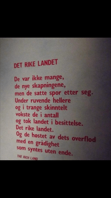Også Maihaugens store fortælling om Norges udvikling fra istiden til i dag er kronologisk og dejlig nem at overskue. Her var det tydeligt, at det ikke nødvendigvis er genstandene, der skaber den gode museumsfortælling, men at det ligeså vel kan være tableauer og panoramaer, der bærer fortællingen. På Maihaugen oplevede vi også, at museumstekster ligefrem kan være poetiske.