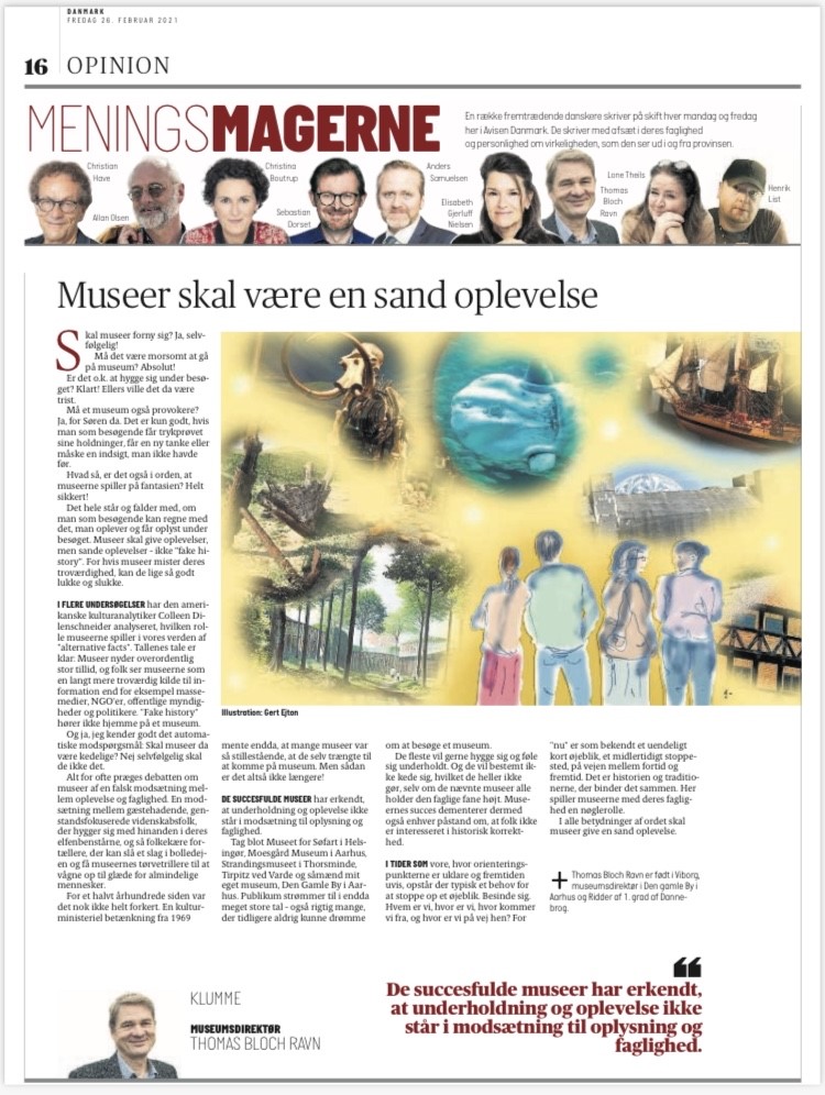Tag blot Museet for Søfart i Helsingør, Moesgård Museum i Aarhus, Strandingsmuseet i Thorsminde, Tirpitz ved Varde og såmænd mit eget museum Den Gamle By i Aarhus. Publikum strømmer til i endda meget store tal – også rigtig mange, der tidligere aldrig kunne drømme om at besøge et museum.