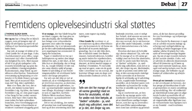 Og ideer, der bærer fremtiden i sig er i den grad noget, vi har brug for her under coronakrisen. Ikke bare i Den Gamle By, men inden for hele oplevelsesbranchen, hvor forretningsgrundlaget for mange virksomheder er eroderet i nærmest uhyggelig grad.